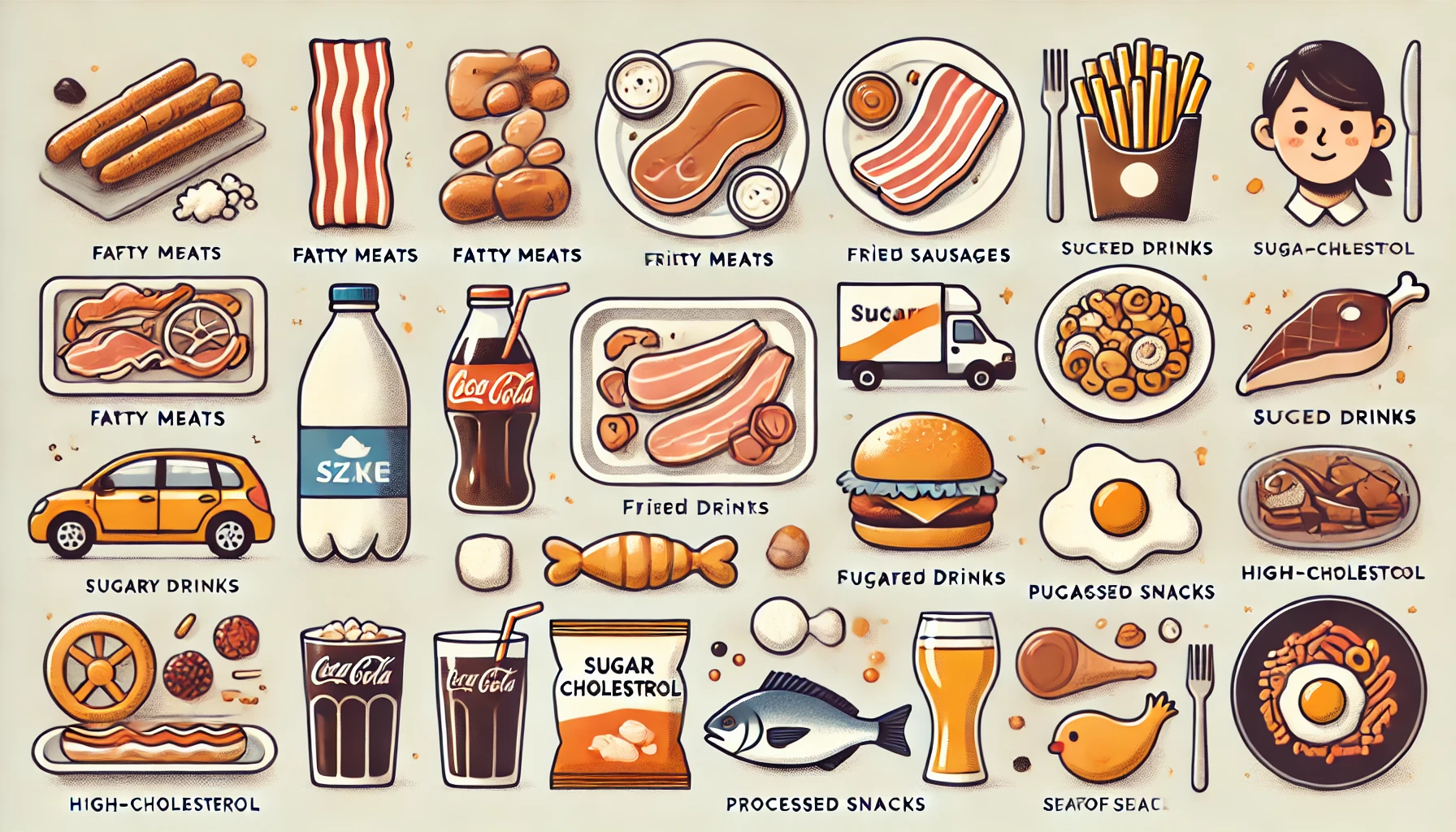 - 기름진 육류 (삼겹살, 갈비, 소시지, 베이컨)
